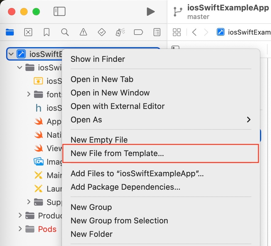 To create or edit your application's Bridging-Header file, follow the following steps: